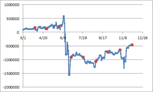 11月の纏めです 11月 kabu.com:+181,128 松井証券: +17,989 kabu.comはシストレで 松井は裁量のindexトレードです 今月はトランプショックがあり、一時-64万まで資産減らし、6月の再現かと思いましたが、その後持ち直し何とかプラスで終われました 今月の…