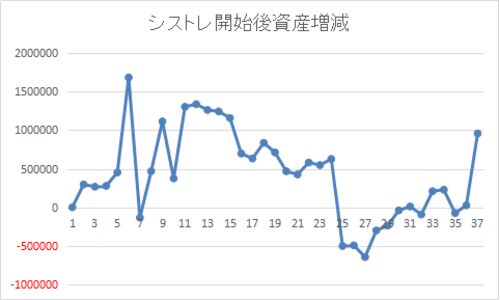 今月あと1週間あり、タイミング的にはおかしいのだけど、シストレ開始から現在までの資産増減の推移を月締めでグラフ化(今月はまだ月末じゃないけど) 丁度3年経過・・・ 最初はシストレもどきというか、とにかくテクニカルだけを見て数日で手仕舞うスイン…
