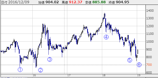 細かく見ると②と③が、2つに分かれてますが、6回の暴落とみていいかと・・・